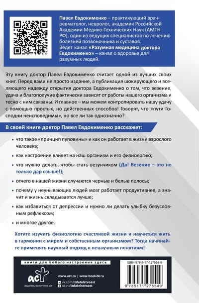 This book is considered by Dr. Pavel Yevdokimenko to be one of his best books. Before you is not just an edition, but a publication of Dr. Evdokimenko's shocking and hopeful discovery that luck, good fortune and prosperity actually depend on the work of our body and are closely related to it. And the main thing is that we can control our luck with the help of simple but effective ways! They say that "the Lord works in mysterious ways", but is everything so unambiguous?
