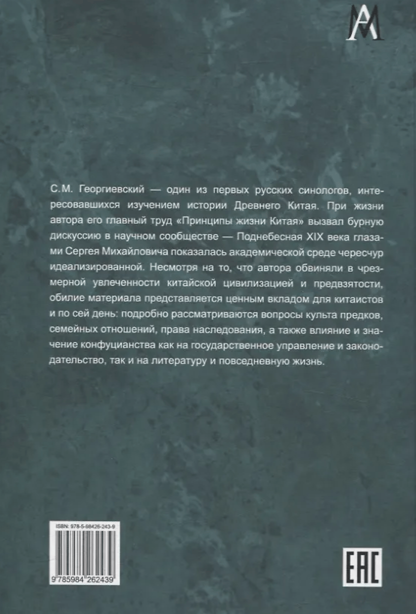 S.M. Georgievskii was one of the first Russian Sinologists interested in studying the history of Ancient China. During his lifetime, his major work, "The Principles of Life in China," sparked heated debate in the scholarly community—Sergei Mikhailovich's view of the 20th-century Celestial Empire seemed overly idealized. Despite the author's accusations of excessive preoccupation with Chinese civilization and bias, the wealth of material remains a valuable contribution to Sinologists to this day: it examines in detail issues of ancestor worship, family relations, inheritance rights,