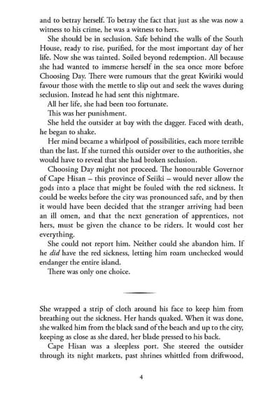 Across the dark sea, Tané has trained to be a dragonrider since she was a child, but is forced to make a choice that could see her life unravel.
