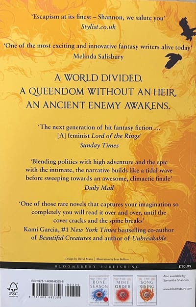 The House of Berethnet has ruled Inys for a thousand years. Still unwed, Queen Sabran the Ninth must conceive a daughter to protect her realm from destruction - but assassins are getting closer to her door.