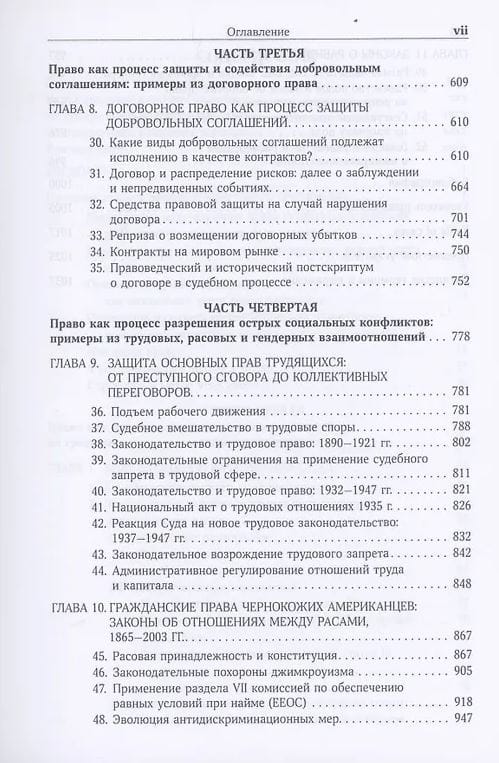 A significant part of the book consists of excerpts from classic books and articles analyzing various aspects of the legal system based on case law. A unique feature of the book is the detailed analysis of several dozen court cases that have become key precedents for resolving various legal disputes.