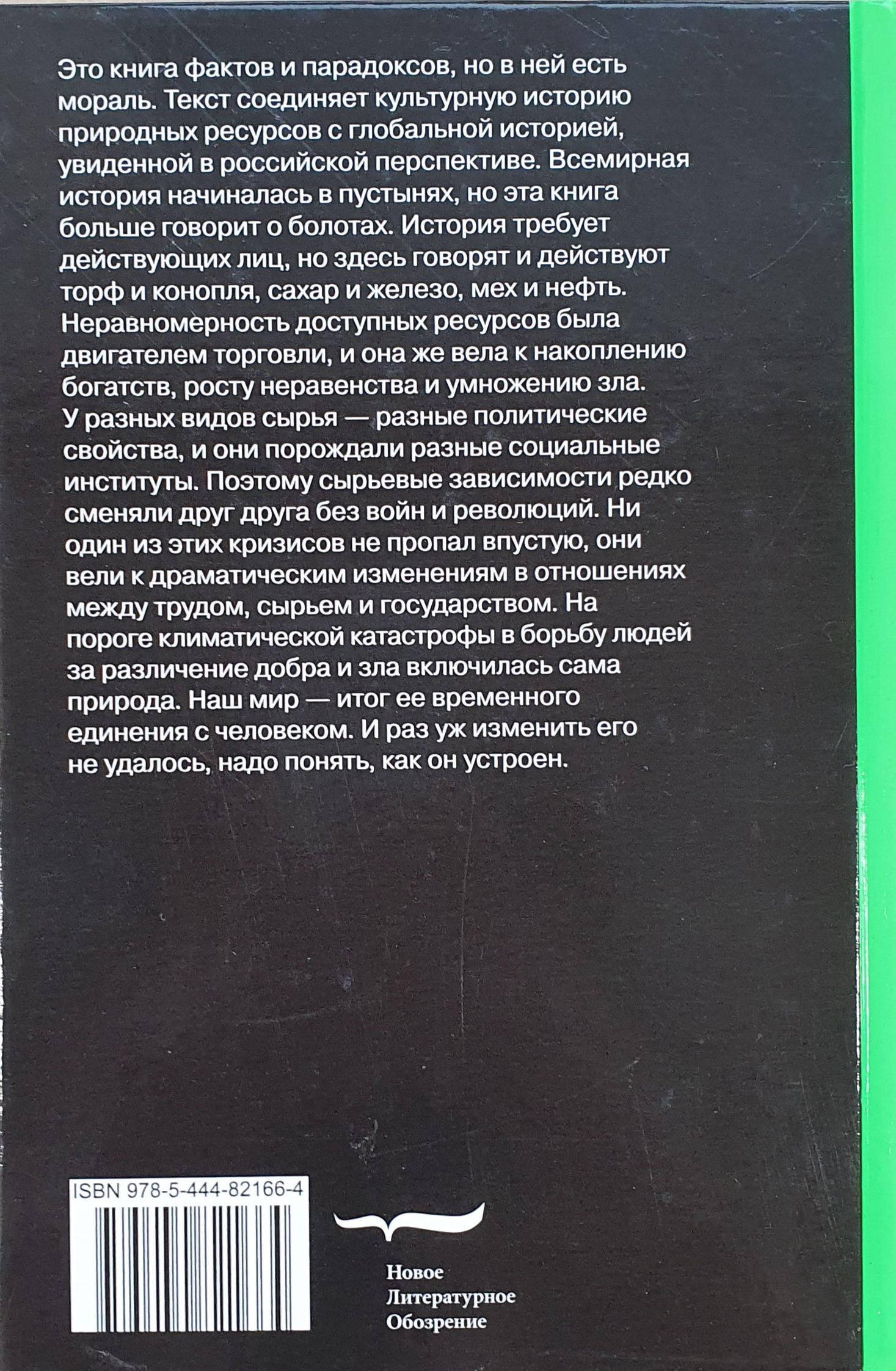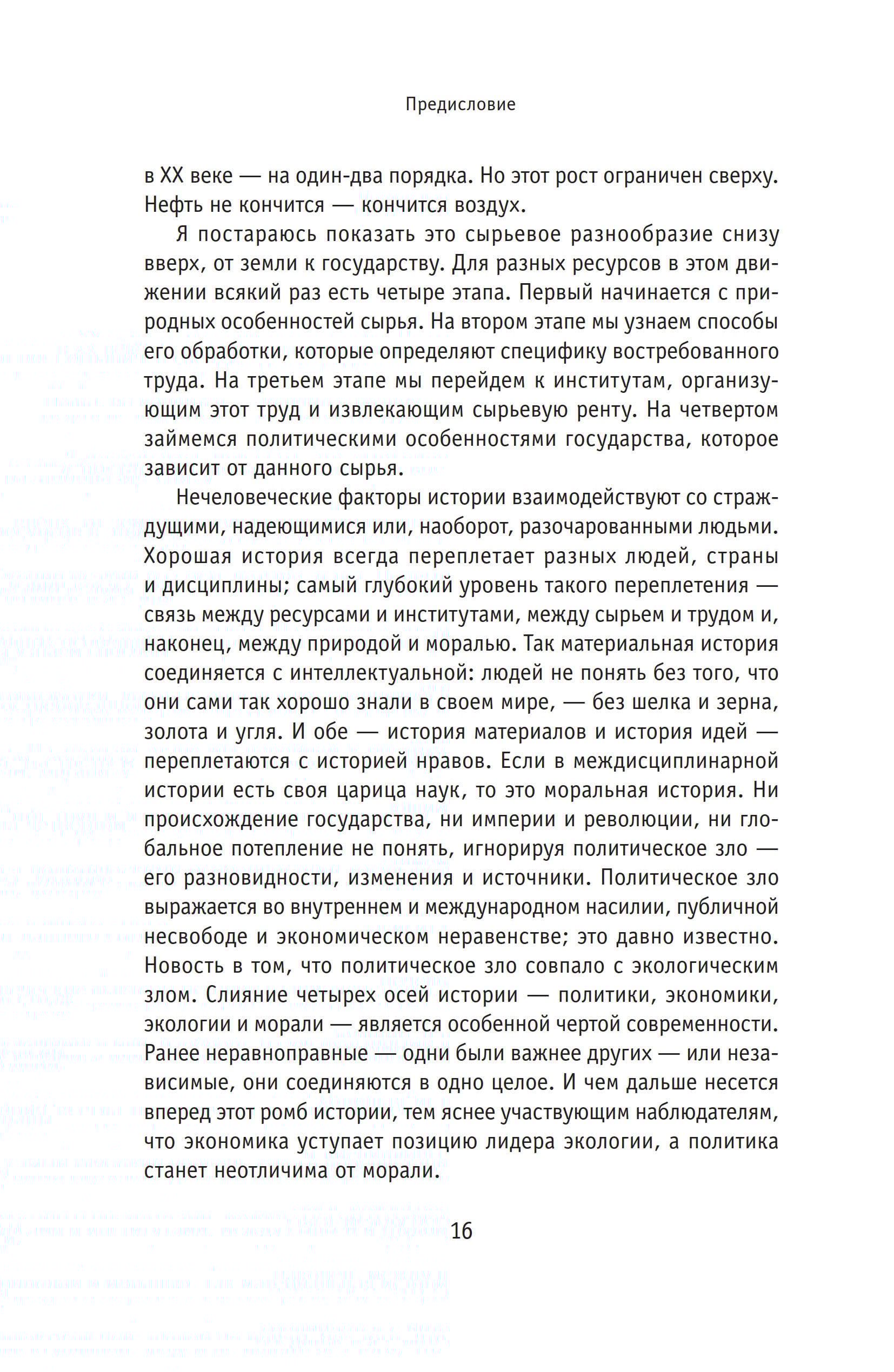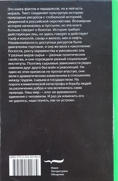 This is a book of facts and paradoxes, but it has a moral. The text connects the cultural history of natural resources with global history seen from a Russian perspective. World history began in deserts, but this book speaks more about swamps. History requires actors, but here peat and hemp, sugar and iron, fur and oil speak and act. The unevenness of available resources has been the engine of trade, and it has also led to the accumulation of wealth, the growth of inequality and the multiplication of evil. Different raw materials had different political properties and gave rise to different social institutions. Therefore, commodity dependencies rarely succeeded each other without wars and revolutions. None of these crises was wasted; they led to dramatic changes in the relationship between labor, raw materials, and the state. On the threshold of the climatic catastrophe, nature itself became involved in the human struggle to distinguish between good and evil. Our world is the result of its temporary union with man. And since we have not been able to change it, we need to understand how it works.