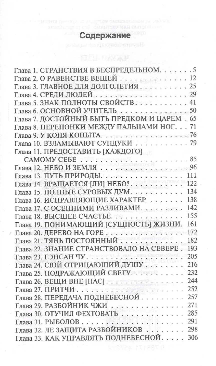 Zhuangzi (c. 396-286 BC) was a great Chinese philosopher of the Warring States period and, along with Laozi, one of the founders of Taoism. This book, a collection of parables and a great cultural monument, bears his name. "Tao"—"path"—is the concept that underlies his teachings. It is a journey along the uncharted path of life, an attempt to find oneself and experience the infinity of the world. Rightly called a pearl of world wisdom, this philosophical treatise conveys to us the ancients' concepts of space and time, government, feelings and reason, creativity and happiness.