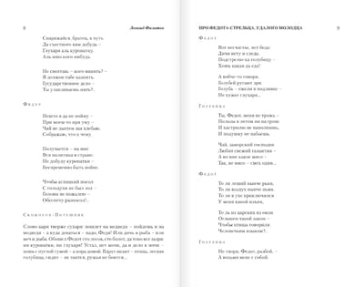 The distinctive characters and witty scenes will leave no one indifferent. The tale "About Fedot the Archer" can rightfully be called one of the most striking books of the 20th century. This edition also includes other plays and fairy tales by Leonid Filatov.