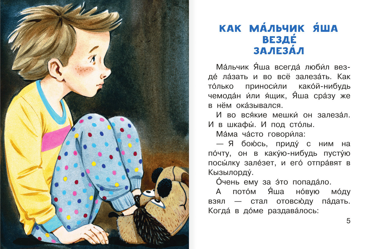 The book includes funny stories of the famous children's writer E. Uspensky about a little boy Yasha. The restless and inquisitive hero of the stories loves to draw, play with friends and dreams of his own elephant. Yasha's funny adventures will teach kids to obey their parents, treat animals with care and observe the rules of good manners. And large letters and accents will allow children to independently familiarize themselves with the fascinating work.