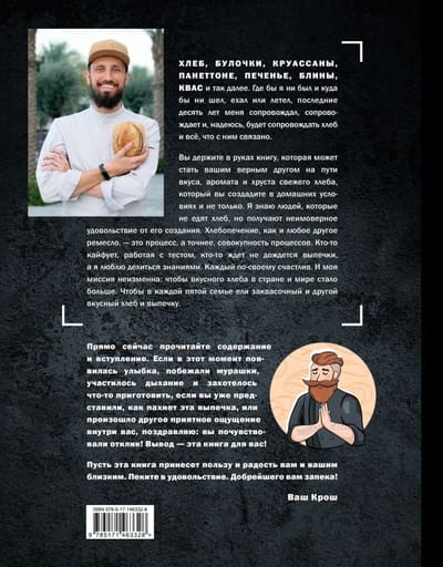 You are holding in your hands a book that can be your true friend on the path of taste, aroma and crunch of fresh bread you create at home and beyond. I know people who don't eat bread, but take immense pleasure in creating it. Bread making, like any other craft, is a process, or rather a set of processes. Some people get high working with dough, others can't wait to bake, and I love to share knowledge. Everyone is happy in their own way. And my mission is unchanged: to make more delicious bread in the country and in the world. That every fifth family will eat sourdough and other delicious bread and pastries. (Zabavnikov Ivan)
