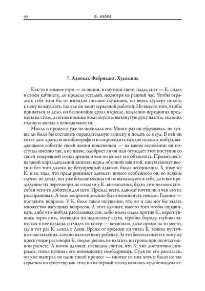 The collection includes two works by Austrian writer Franz Kafka (1883-1924) - the novels "The Process" (1914-1915) and "The Castle" (1922), which have become a kind of symbol of the author's work, one of the most mysterious texts of the XX century. The novels were translated into Russian by Rita Yakovlevna Wright-Kovaleva (1898-1988), and 65 drawings by contemporary artist Vera Dubrovskaya were used in their design.