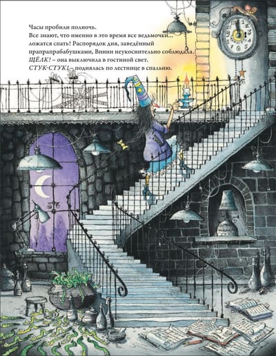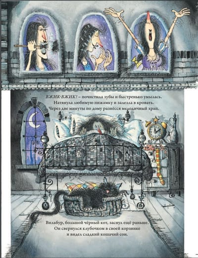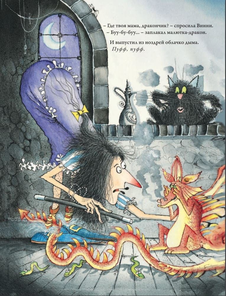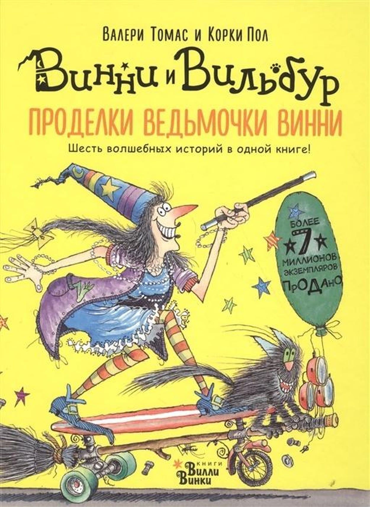 Meet Winnie the witch and her black cat Wilbur. Winnie loves Wilbur, orange tights, pumpkin soup and her magic wand. Wilbur loves Winnie, broom rides, cheesecake and curling up in a ball in his basket. And of course, Winnie and Wilbur just love adventure. What do you do if a real dragon comes into the house at night? How do wizards have fun at parties? Where can you go on a magic carpet? Winnie the Witch and Wilbur the cat are never bored. Popular author Valerie Thomas has been a longtime elementary and middle school teacher in Australia and England. She loves to travel, so the heroes of her books never sit still. Thanks to the funny plot and recognizable illustrations by Corky Paul, the books about Winnie the Witch and her cat Wilbur won the Children's Book Award. The books have a combined print run of more than 7 million. "Winnie the Witch Winnie's Pranks: six magical stories in one book" include: "Winnie and the Midnight Dragon," "Happy Birthday, Winnie!", "Winnie and the Plane Carpet," "Winnie and the Adorable Pumpkin," "Winnie in Space," and "Winnie in the Underwater World." For adult reading to children.