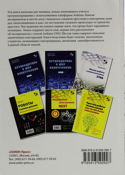 This book is written for someone just beginning to learn programming using the Arduino platform. Many experiments and sketches may seem too simple to repeat, even for the "uninitiated", but the comprehension of the complex comes from accepting the simple. The more reliably you master the first steps, the easier it will be to build up. The book contains six chapters, the first five of which are about experimenting with the Arduino UNO board. The sixth chapter contains descriptions of completed designs. The book will certainly be useful for schoolchildren, students, beginners in electronics, who want to educate themselves in this field of knowledge.