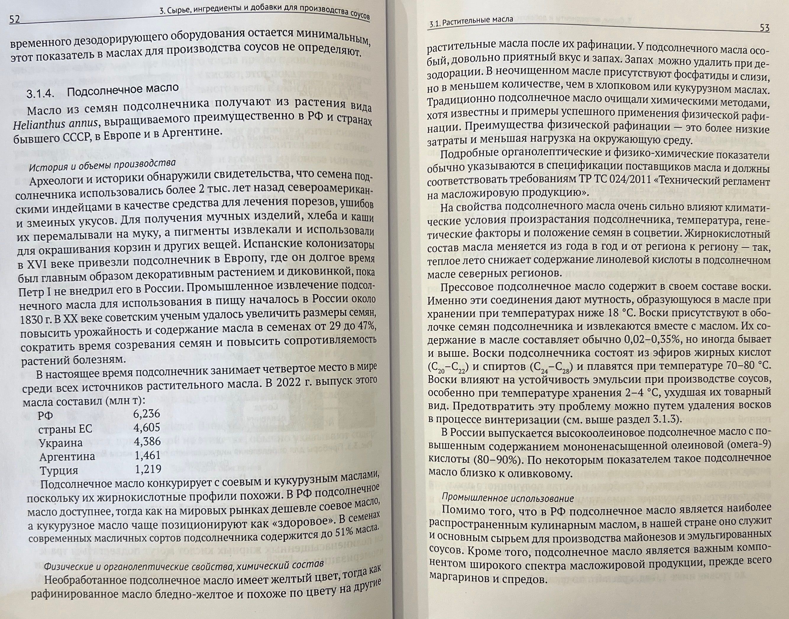 The book contains many illustrations, tables, and auxiliary materials useful to practitioners. The guide is addressed to technologists, developers, managers and specialists of sauce manufacturing enterprises, companies in the oil and fat industry, suppliers of raw materials, ingredients and equipment. The book will also be useful for students and teachers of specialized educational institutions, employees of supervisory and certification bodies.