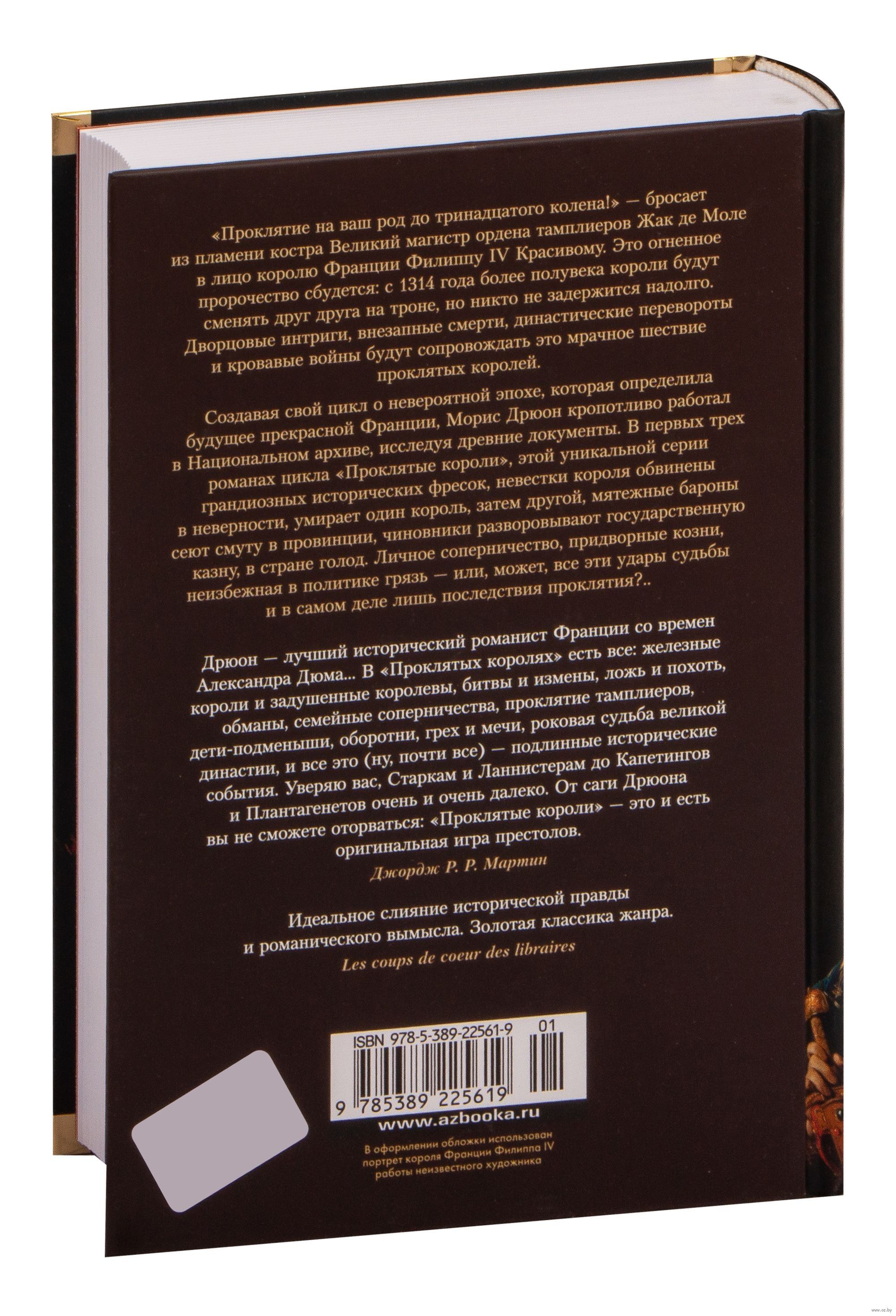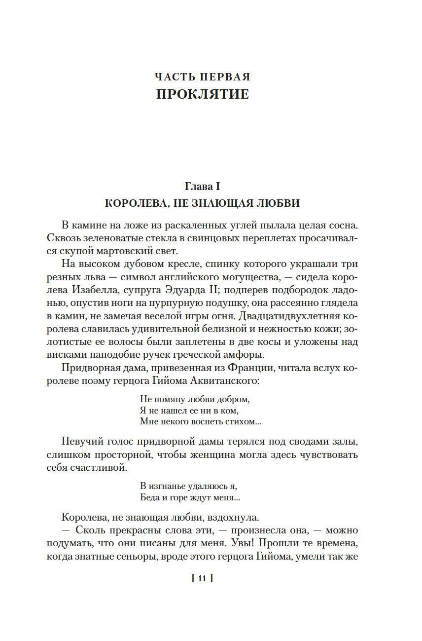 "A curse on your family to the thirteenth knee!" - throws from the flames of the bonfire Grand Master of the Order of Templars Jacques de Molay in the face of King Philip IV the Beautiful of France. This fiery prophecy will come true: from 1314 more than half a century kings will succeed each other on the throne, but no one will not stay for long. Palace intrigue, sudden deaths, dynastic coups and bloody wars will accompany this grim procession of cursed kings. Creating his cycle about the incredible era that determined the future of beautiful France, Maurice Druon painstakingly worked in the National Archives, researching ancient documents. "The Accursed Kings," this unique series of grand historical frescoes, later inspired George R. R. R. R. Martin, a great admirer of Drewon, while working on "A Song of Ice and Fire." In the first three novels of the cycle, the king's daughters-in-law are accused of infidelity, one king dies, then another, rebellious barons sow turmoil in the provinces, officials plunder the state treasury, the country is famine. Personal rivalry, court intrigues, the inevitable in politics mud - or, perhaps, all these blows of fate and really just the consequences of the curse ...?