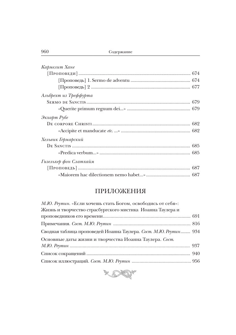 To date, more than eighty sermons, delivered by him mainly in Cologne and Strasbourg, as well as one letter addressed to the nuns of the Dominican monastery of Maria Medingen on the Danube, are attributed to John Tauler (1300-1361), a student and follower of Meister Eckhart and an associate of Heinrich Suso. All of them are included in this edition. The Supplements to the main part of the edition include the main text of the pseudo-Taulerians, The Life of Doctor John Tauler, whose attribution to Tauler was refuted by the neo-Thomist Heinrich Denifle at the end of the 19th century, and sermons by sixteen Dominican theologians of the second order, some of whom are presented in the famous homiletic collection The Paradise of the Rational Soul. As a successor of Eckhart, Tauler generally adopted the metaphysics presented by his predecessor in treatises and sermons in German and, probably, in oral conversations (documentary evidence of the latter, however, has not survived). This Neoplatonic metaphysics - very reminiscent of the metaphysics of the Byzantine hesychast of the mid-14th century Gregory Palamas - was developed by Eckhart in Latin commentaries on the biblical books of his scholastic summa, The Threefold Work, which Tauler apparently did not know. Despite Tauler's immersion in Eckhart's metaphysics, he cannot be called an Eckhartian epigone, as was often the case until recently, since as a practicing, experienced spiritual mentor he developed, within the framework of Eckhart's concept of man, an exceptionally deep and subtle psychology, which was outlined by Eckhart (above all, in his "Speeches of Admonition"), but was not developed by him. Thanks to his psychology, Tauler entered the history of German, and then through Latin translations also European thought, he became famous among the early reformers. De facto Tauler saved from centuries of oblivion the metaphysics of Eckhart, whom, judging by the number of manuscripts, he many times surpassed in popularity. In addition, having developed the active potential of Eckhart's detachment, Tauler began to build the work ethic of early capitalism. This is why he became one of the main heroes of Max Weber's famous work "The Protestant Ethic and the Spirit of Capitalism". The social processes illuminated by M. Weber in the sociological plane were based on anthropology and ethics of the Tauler type. All translations included in this edition are carefully commented and provided with a detailed accompanying article. The binding of this edition is covered with leatherette. The edition is provided with a full-color dust jacket with selective varnishing, as well as a white bookmark.