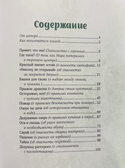 Natalia Remish's new stories about Mira, Gosha, and Baby are all about safety. On the street and at the dacha, in the mall and by the water, they encounter the most unexpected situations, and caring adults help them navigate them. Questions after each chapter give parents the opportunity to discuss with their children how to recognize potential dangers, how to respond to them, and how to avoid them.