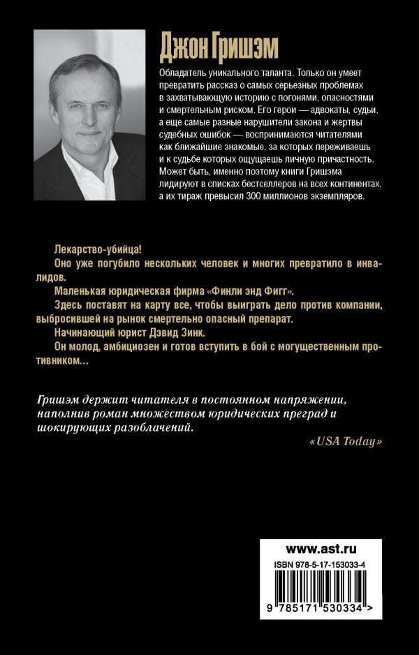 It's a killer drug! It's already killed several people and crippled many. The small law firm of Finley and Figg. Here will put everything at stake to win a case against a company that put a deadly drug on the market. David Zinck is an aspiring lawyer. He's young, ambitious and ready to do battle with a powerful adversary....