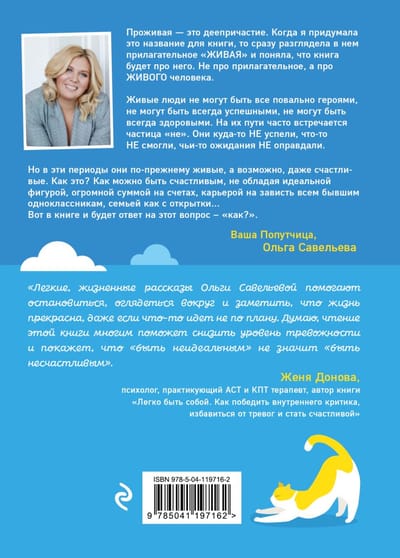 Motivational stories often feature the "iron men": those who "get up and walk", who have been repeatedly punched in the nose, humiliated, pushed to the brink of heartache, and they... get up and walk on. Most of the time, however, such stories are either annoying or depressing: why did they make it and you didn't? The new book by writer and author of several bestsellers Olga Savelieva about the fact that we are mostly not "iron men", but the most ordinary people, woven from flesh, blood, laughter tears, anger, love, pain, joy. And about how important it is to switch on your awareness in time and live what life has thrown at you - both bad and good. After all, it is not for nothing that the verb "to live" contains the innermost meaning of "to live", is it?