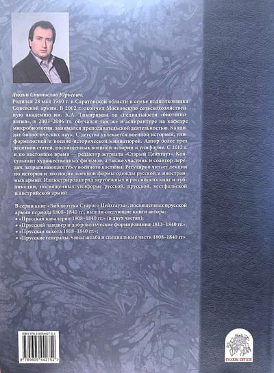 This book completes a series of publications devoted to the Prussian Army from 1808 to 1840, covering unit histories, uniforms, equipment, and weapons. This section covers the general staff, ranks of the General Staff, the War Ministry, adjutants, couriers, military officials, foot artillery, engineering and supply units, the navy, cadet corps, the Guards NCO Company, and the Burgher Guards. The book is richly illustrated with several hundred original engravings, lithographs, graphic works, and paintings depicting Prussian army ranks, from museum and private collections, both Russian and foreign. This publication will serve as an essential reference for anyone studying military history and uniforms of the first half of the 19th century.