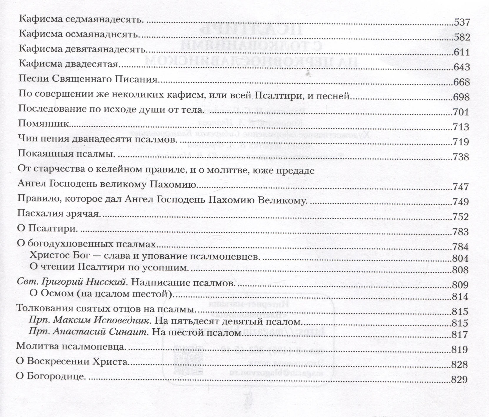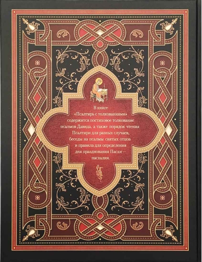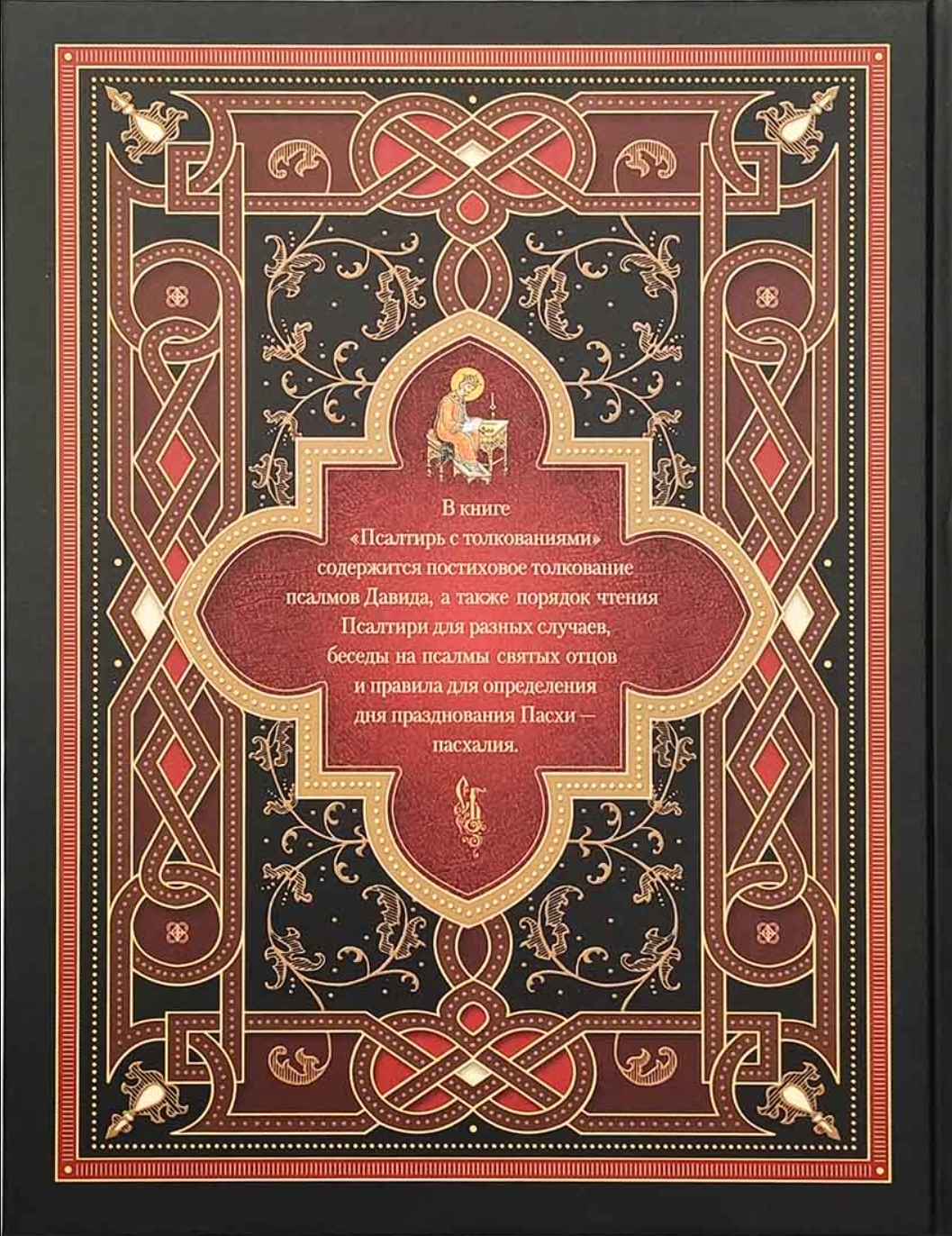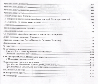 The book "The Psalter with Commentaries" contains a post-church commentary on the psalms of David, as well as rules for the order of reading the Psalter for various occasions, homilies on the psalms of certain holy fathers, and rules for determining the day of Easter—the Paschalia.