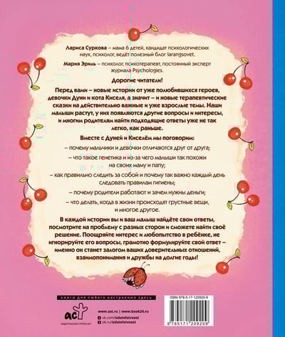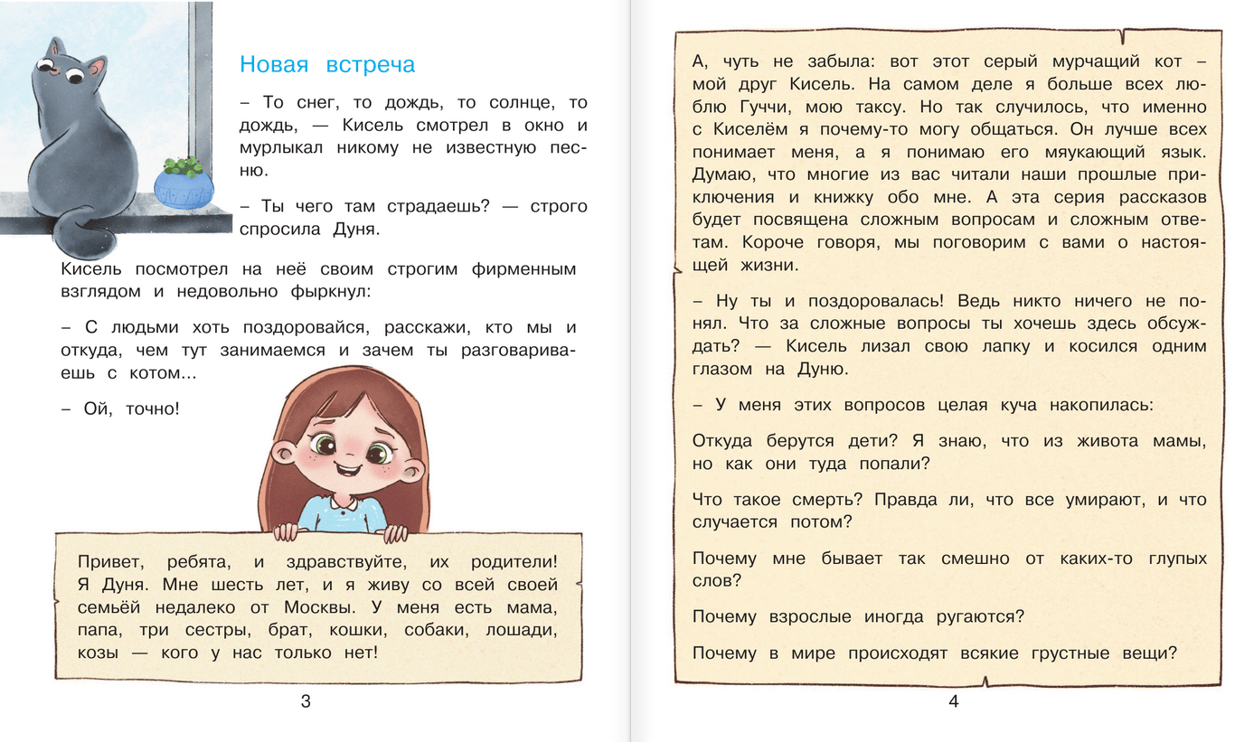 Dear readers! Before you - new stories from already favorite characters, the girl Dunya and the cat Kisel, and therefore - and new therapeutic fairy tales on really important and already adult topics. Our kids are growing up, they have other questions and interests, and for many parents it's not as easy to find the right answers as it used to be.