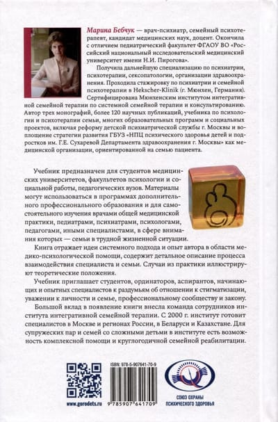The book reflects the ideas of a systemic approach and the author's experience in the field of medical and psychological care, and contains a detailed description of the process of interaction between a specialist and a family. Cases from practice illustrate the theoretical provisions. The textbook invites students, residents, postgraduates, novice and experienced professionals to reflect on attitudes towards stigmatization, respect for the individual and the family, the professional community and the law.