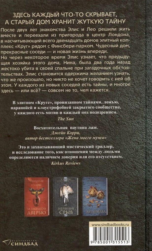 Having experienced a tragedy in the past, thirty-five-year-old Alice no longer hopes to find happiness. But when she meets Leo, she realizes that fate has smiled on her, and soon they, full of hopes for a new, happy life, move into a renovated old house in a small elite complex "Circle" in the central district of London.