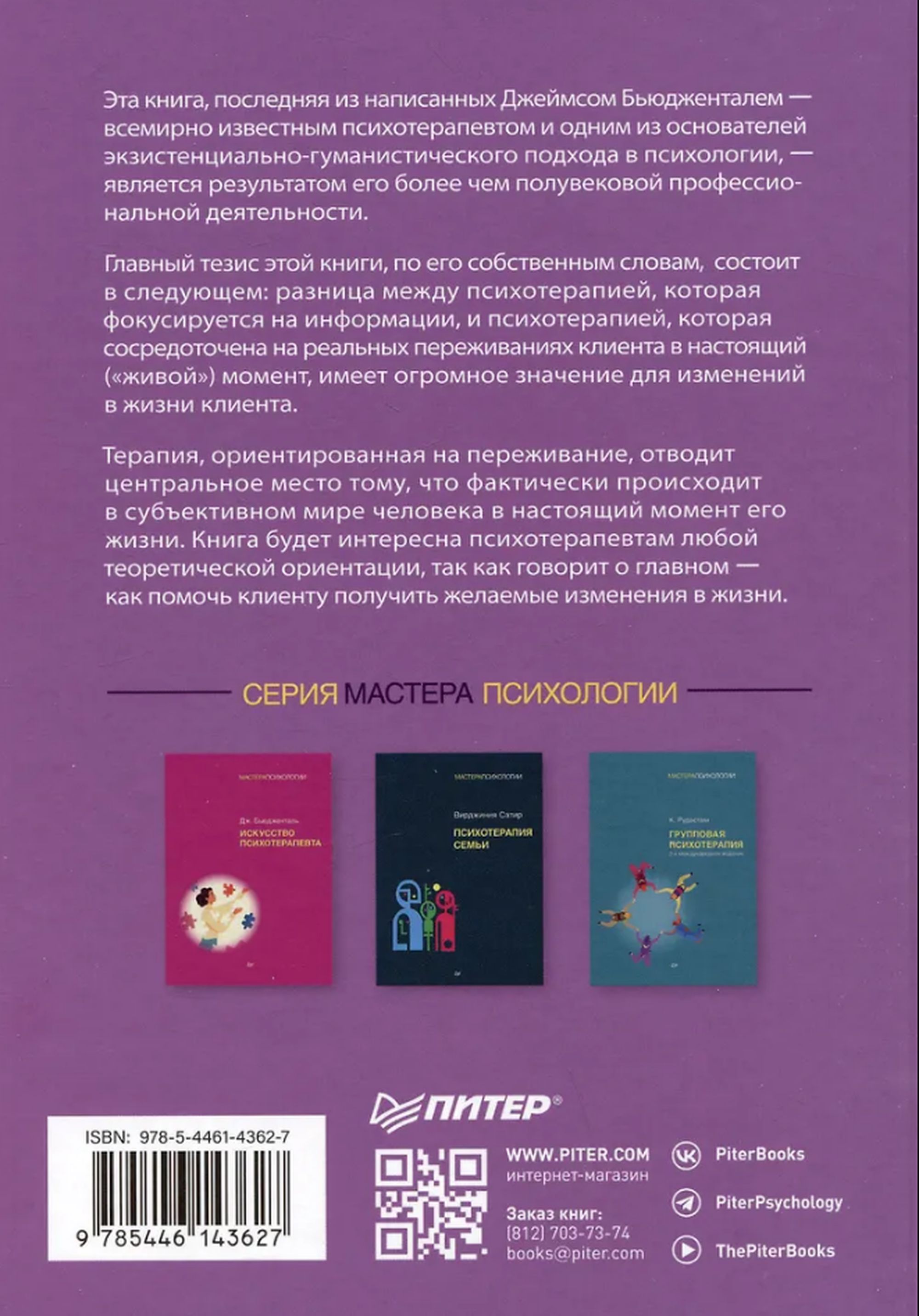 This book, the latest by James Bugental—a world-renowned psychotherapist and one of the founders of the existential-humanistic approach to psychology—is the result of more than half a century of professional practice. The book's central thesis, in his own words, is the following: the difference between psychotherapy that focuses on information and psychotherapy that focuses on the client's actual experiences in the present moment is crucial for achieving change in the client's life. Experience-focused therapy places central importance on what is actually happening in a person's subjective world at the present moment. This book will be of interest to psychotherapists of any theoretical orientation, as it addresses the most important issue: how to help clients achieve the changes they desire in their lives.