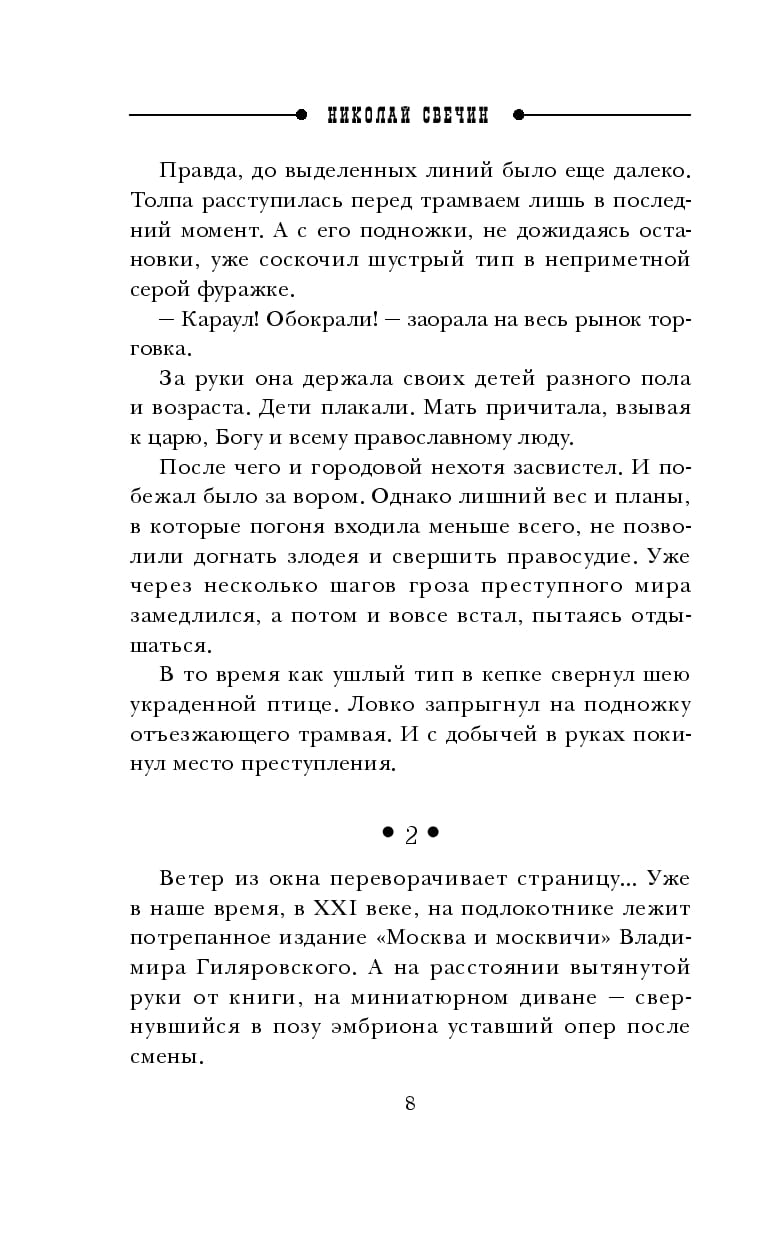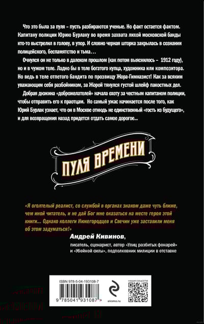 What kind of bullet it was - let the scientists understand. But the fact remains. Police Captain Yuri Burlak during the capture of a dashing Moscow gang someone shot in the head, at point-blank range. And as if a black curtain closed in the consciousness of a policeman, unconsciousness and darkness ... He woke up not only in the distant past (as it turned out later - in 1912), but also in someone else's body. It would be fine in the body of a rich merchant, artist or composer. But in the body of a thug nicknamed Zhora the Gymnasist. As for any self-respecting robber, behind Zhora stretched a thick trail of evil deeds, and a good dozen "well-wishers" began the hunt for an honest police captain to send him to the dust. But the most horror begins after Yuri Burlak learned that he is not the only "guest from the future" in Moscow, and to return back will have to give the most expensive ...