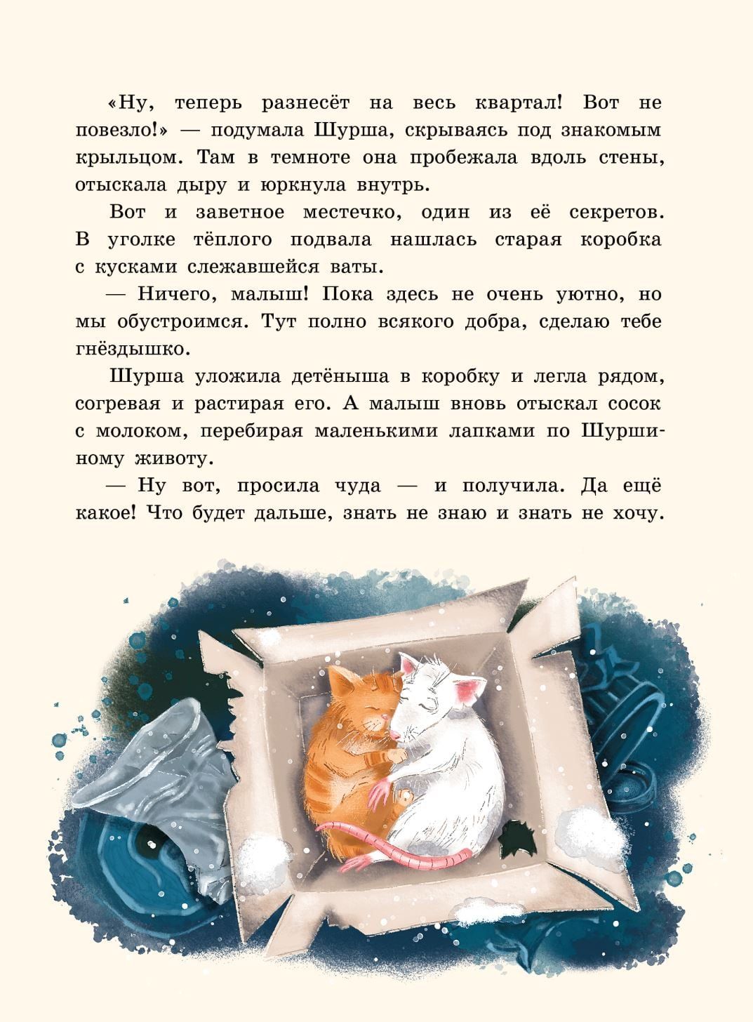 Bright Christmas lights illuminate the decorated streets along which the sad white rat Shursha raves. And even though the winter night was cruel to her, a spark of hope still warms in her small heart. Christmas Star! She will certainly fulfill Shurshi’s cherished desire to find a family again. But the miracle is unpredictable: it gives the rat an unusual son - a small red kitten.