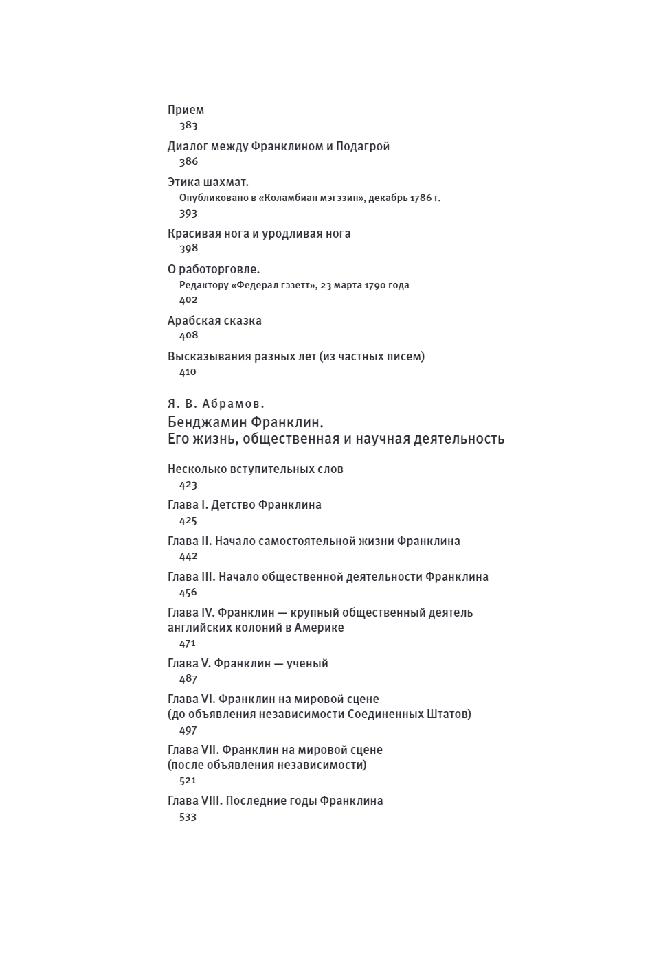 This book presents to the modern reader a part of the extensive literary and scientific heritage of the statesman and public figure, diplomat, scientist, inventor, writer, philosopher, businessman - Benjamin Franklin (1706-1790). Before you is his autobiography, which will reveal the personal characteristics and view of the world one of the most striking figures of world history. The edition also includes: "A Treatise on Freedom and Necessity, Pleasure and Suffering", "On the Slave Trade".