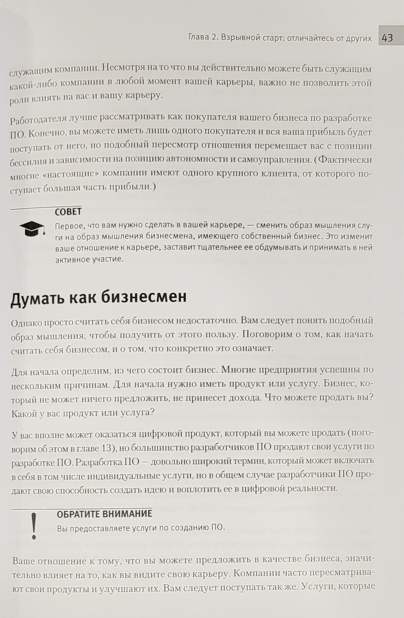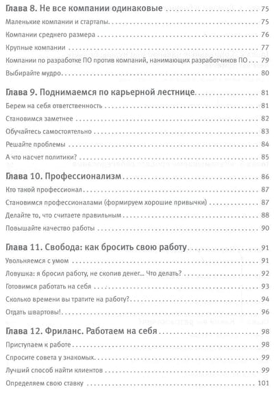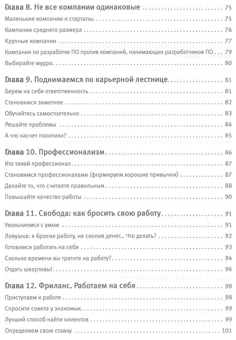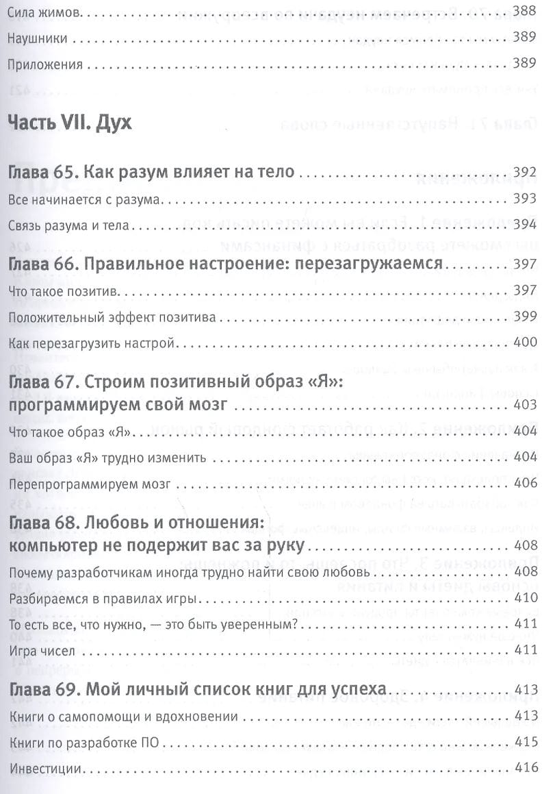 Any programmer is, first of all, a person with their own strengths and weaknesses. But at the same time, a programmer is an intellectual, a person who is constantly busy solving problems, analyzing requirements, fixing errors, interacting with colleagues and customers. Finally, a programmer is a person who regularly experiences serious stress, is forced to meet strict deadlines and is simply obliged to constantly improve himself as a professional and a person. This book contains comprehensive information on what is required to build a successful career as a programmer, helps IT specialists better understand their profession and colleagues, always remain in demand in the labor market, develop purposefully and effectively, and also get real dedication and genuine pleasure from their favorite work.