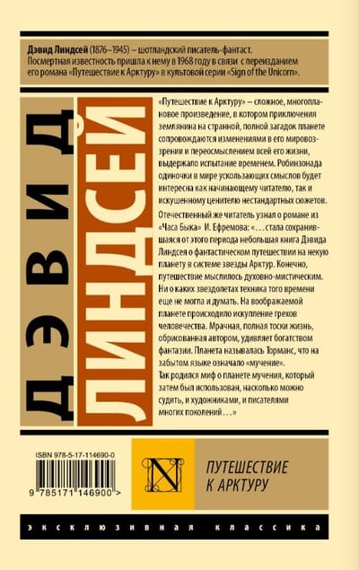 David Lindsay (1876 - 1945) was a Scottish science fiction writer. He achieved posthumous fame in 1968, in connection with the republication of his novel "Journey to Arcturus" in the cult series "Sign of the Unicorn".