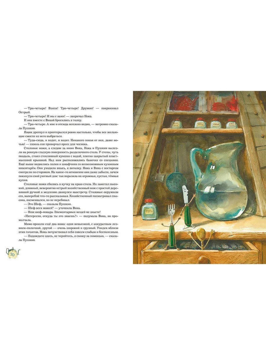 Did you know that cutlery comes to life at night and behaves just like people? As soon as the owners fall asleep, the kitchen begins a real adventure! Vika and Noka, the children's fork and knife, go in search of the missing spoon, nicknamed Green. On the way they will meet cutlery and household utensils of all sorts. Some will help them, and some will use them to their advantage. Someone will save the little ones, and someone will be saved by them. A huge monster - a domestic ginger cat - will be waiting for the little ones around every corner. But friendship, mutual support and optimism will lead them forward. Where to? To the edge of the kitchen, of course! And hurry back - before people wake up! The artist Maria Pavlova managed to follow the heroes of this night story. And even captured them in her magical watercolors!