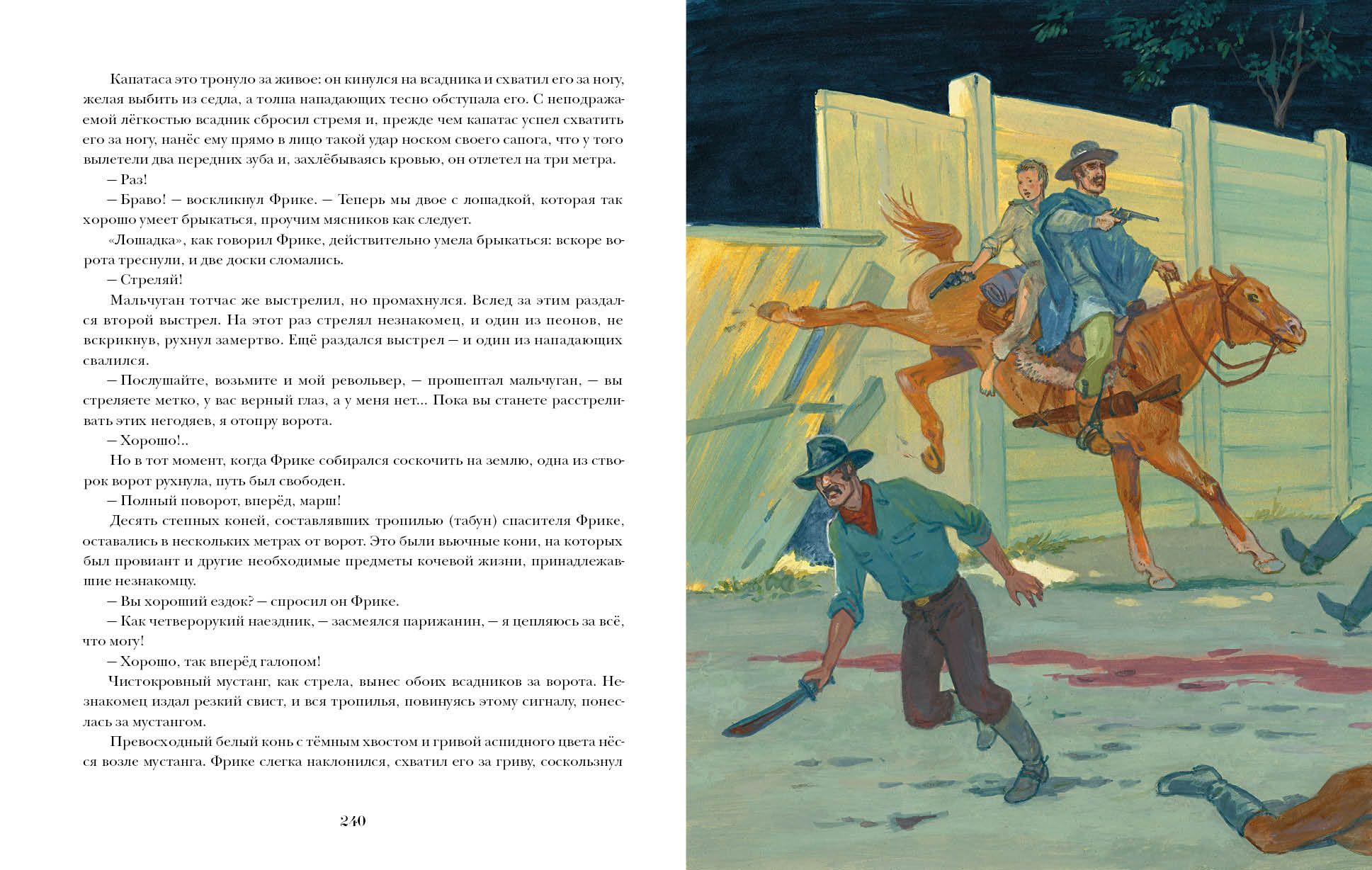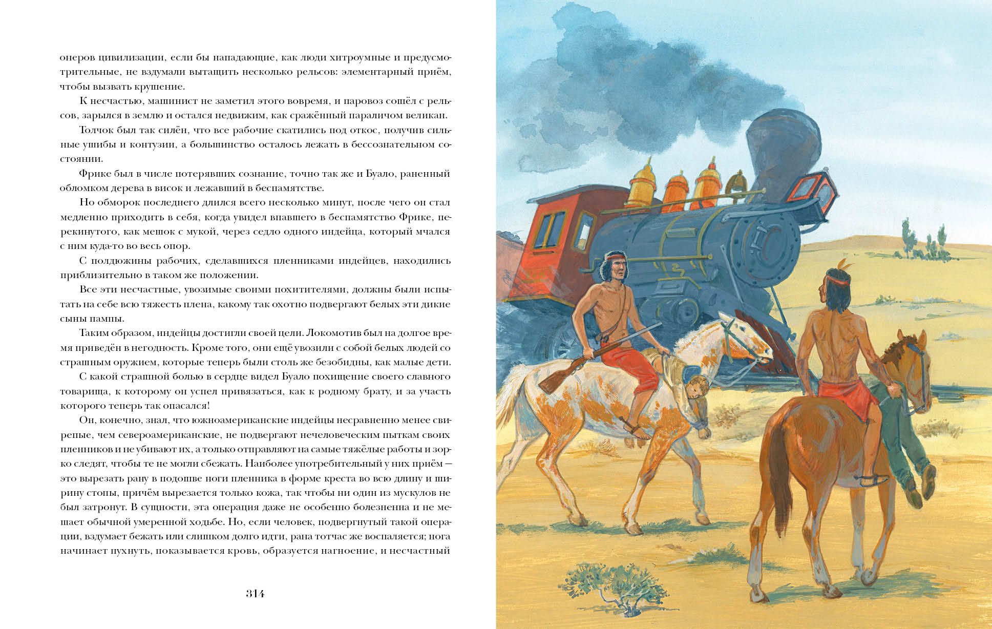 The novel of the master of adventure genre Louis Boussenard tells about the incredible adventures of a young Parisian Victor Guyon nicknamed Fricke and his friends - a young traveler Andre and Dr. Lamperiere - in different parts of the world. Young Fricke and his companion André are commissioned by the Admiral to go in search of a sea doctor who has suddenly disappeared from the ship. Unfortunately, their sloop is attacked by black savages. The heroic battle ends not in favor of the sailors - they find themselves captured by cannibals, where they meet the missing doctor. But this was only the beginning of unthinkable trials that fate has prepared for our heroes: to get into the clutches of slave traders, to escape on an elephant from a gang of robbers, to get over a fever, to experience a deadly snake bite and even to make a fantastic escape from Indian captivity on a flying machine, which is pulled by two condors! Will the three brave travelers be able to escape from the maelstrom of dangers and is there a limit to human endurance and fortitude? The book is illustrated by the famous artist Sergey Yarov.