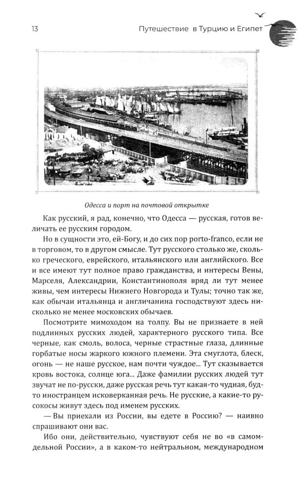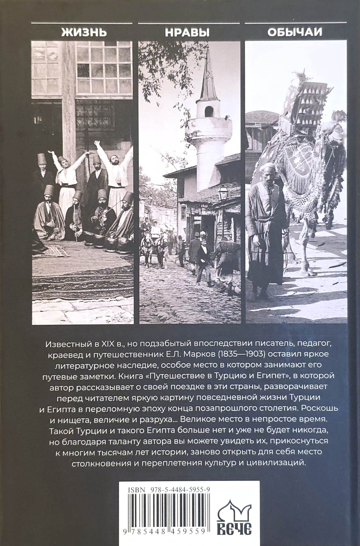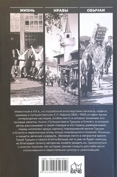 E. L. Markov (1835–1903), a writer, educator, local historian, and traveler well-known in the 19th century but later largely forgotten, left behind a vibrant literary legacy, among which his travel writings occupy a special place. His book, "Journey to Turkey and Egypt," in which the author recounts his journey to these countries, unfolds before the reader a vivid picture of everyday life in Turkey and Egypt during the transformative era of the late 19th century. Luxury and poverty, grandeur and devastation... A great place in difficult times. Such a Turkey and such an Egypt no longer exists and will never again exist, but thanks to the author's talent, you can see them, touch upon many thousands of years of history, and rediscover a place where cultures and civilizations collided and intertwined.