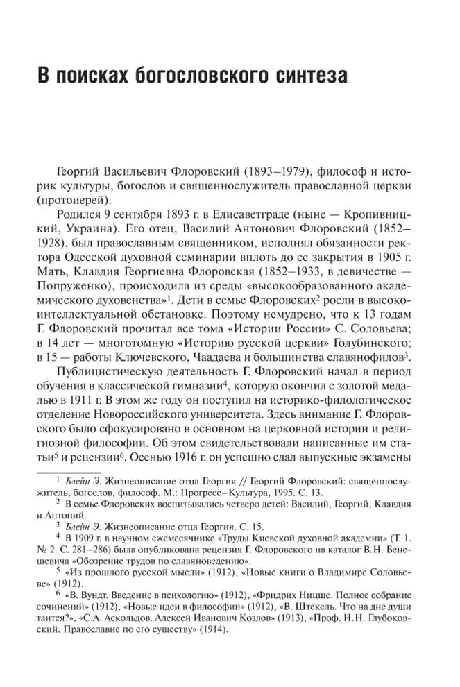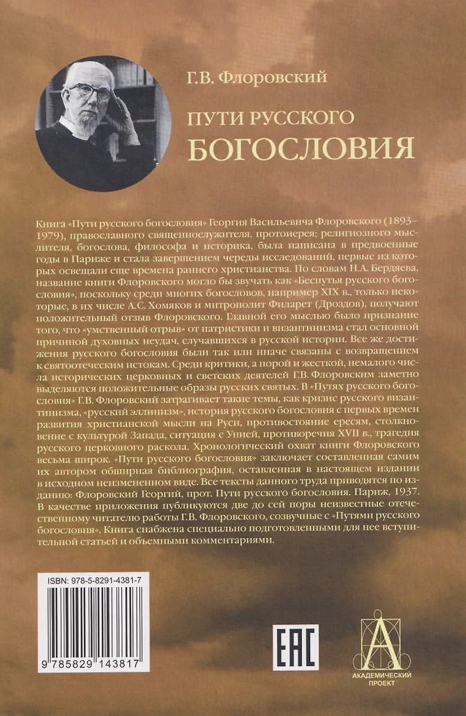 The book "Paths of Russian Theology" by Georgy Vasilyevich Florovsky (1893-1979), an Orthodox clergyman, archpriest, religious thinker, theologian, philosopher, and historian, was written in the pre-war years in Paris and culminated in a series of studies, the first of which covered the era of early Christianity. According to N.A. Berdyaev, the title of Florovsky's book could have been "The Wayward Paths of Russian Theology," since among many theologians, for example those of the 19th century, only a few, including A.S. Khomyakov and Metropolitan Philaret (Drozdov), received a positive review from Florovsky. His central idea was the recognition that the "intellectual break" from patristics and Byzantinism was the primary cause of the spiritual failures that occurred in Russian history. All the achievements of Russian theology, however, were in one way or another connected with a return to patristic roots. Amidst the criticism, sometimes harsh, of many historical church and secular figures, G.V. Florovsky's positive images of Russian saints stand out.