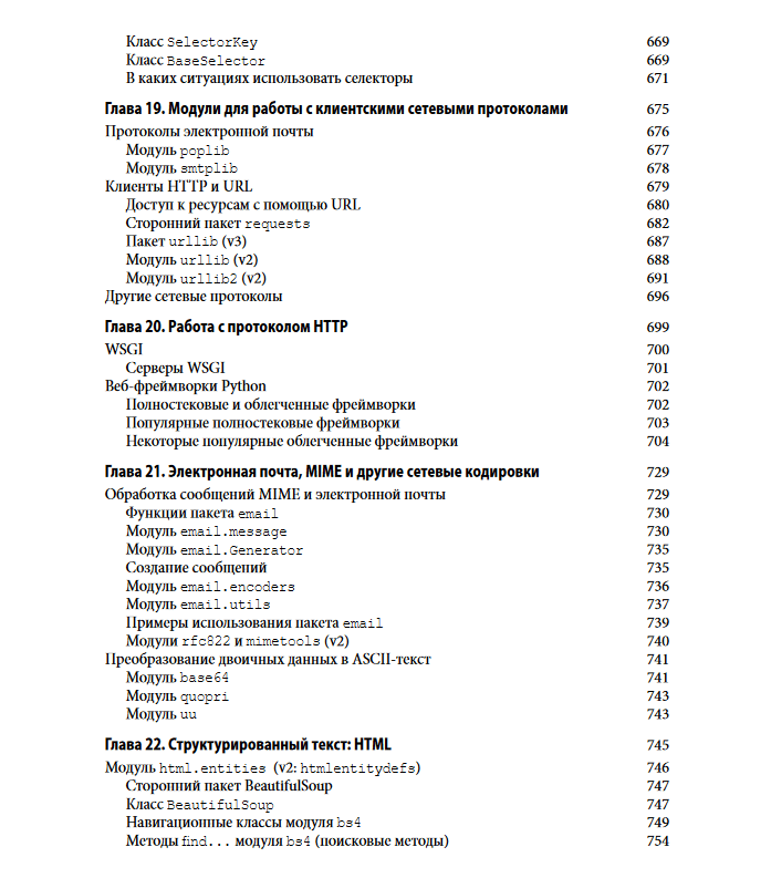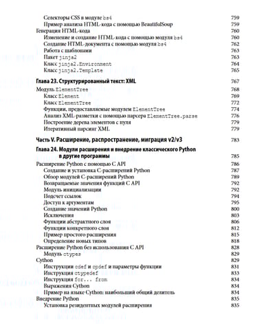Python is one of the most popular modern programming languages. The third edition of this hands-on guide is an exhaustive reference that describes most of the modules in Python’s extensive standard library and the most commonly used third-party modules. The directory is focused on the Python 2 version. 7 and 3.5, but also includes information about changes and innovations in Python 3. 6. The book covers an extremely wide range of Python applications, including web applications, network programming, XML document processing, database interaction, and high-speed computing. It will be an ideal help for those who decided to learn Python with prior experience in programming in other languages, and for those who already use this language in their development.