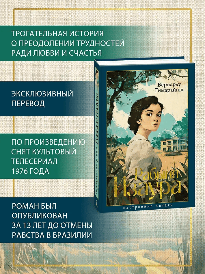 A hundred years later, Bernardo Guimarães' novel formed the basis of a television series (1976), which was shown with great success in different countries. Since then, the novel "Slave Isaura" has become a cult classic: readers are attracted to it not only by the reliably depicted life and customs of provincial Brazil in the mid-19th century, but also by the happy ending - the triumph of a pure and noble soul.