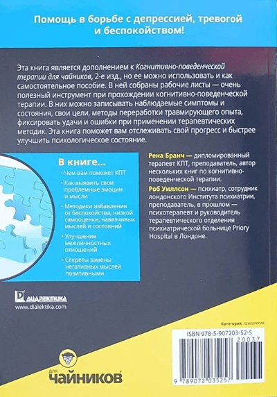 This book is a companion to Cognitive Behavioral Therapy for Dummies, 2nd edition, but can also be used as a stand-alone manual. It contains worksheets, which are a very useful tool when undergoing cognitive behavioral therapy. In them you can write down symptoms and conditions you observe, your goals, methods of processing traumatic experiences, and record successes and mistakes in applying the therapeutic techniques. This book will help you track your progress and improve your psychological well-being faster.