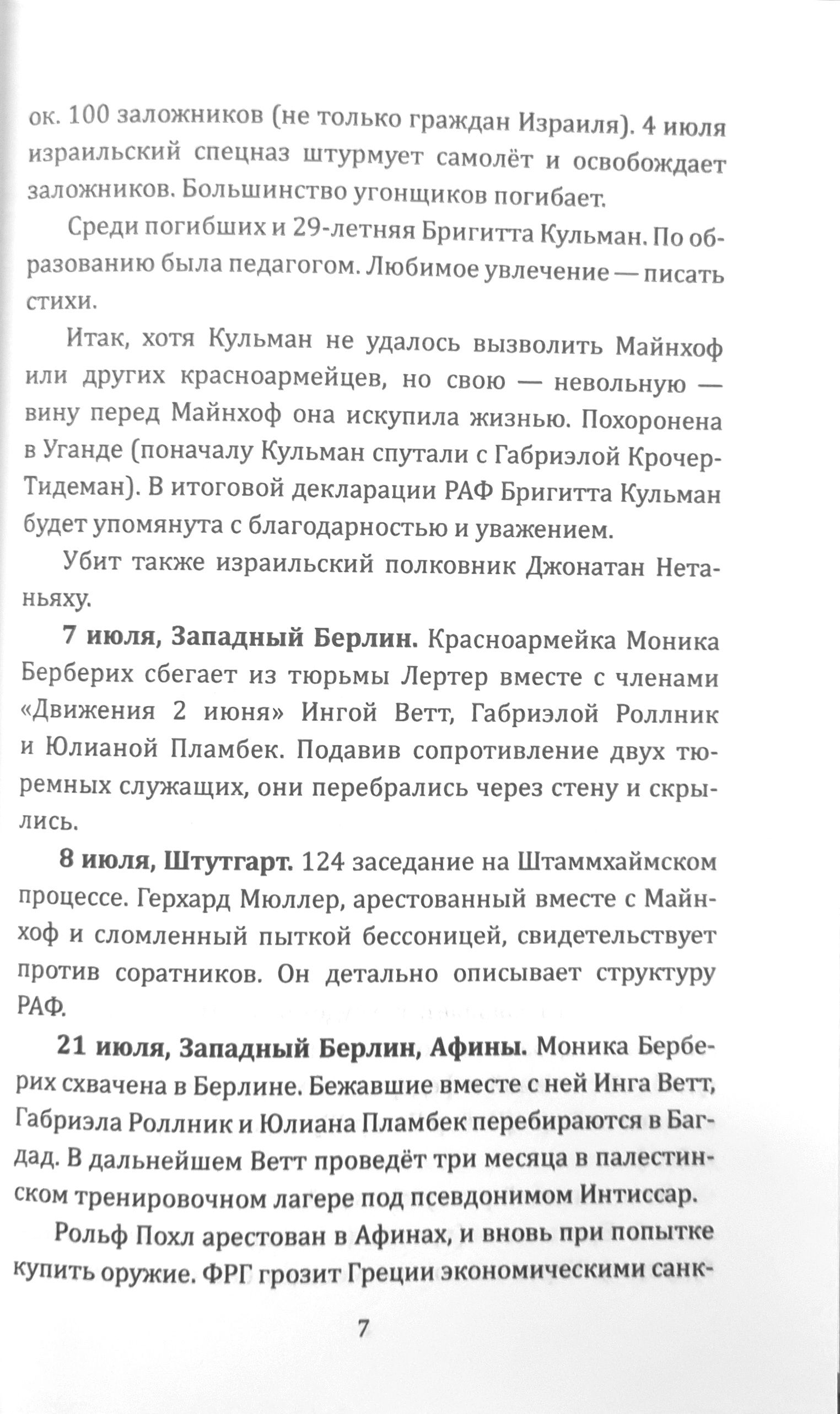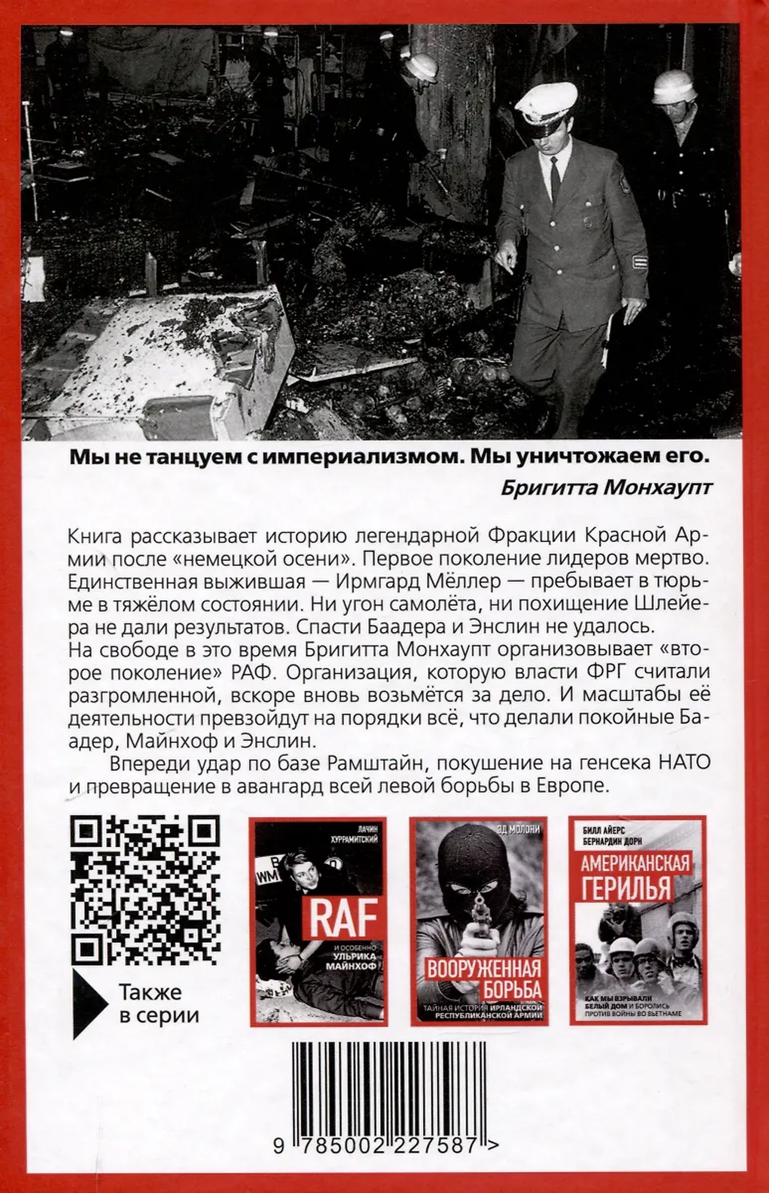The book tells the story of the legendary Red Army Faction after the "German Autumn". The first generation of leaders is dead. The only survivor, Irmgard Möller, is in prison in serious condition. Neither the hijacking of the plane nor the kidnapping of Schleyer yielded results. Baader and Ensslin could not be saved. At this time, Brigitte Mohnhaupt, who was free, organizes the "second generation" of the RAF. The organization, which the FRG authorities considered defeated, will soon take up the matter again. And the scale of its activities will surpass by orders of magnitude everything that the late Baader, Meinhof and Ensslin did.