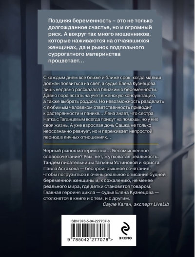 With each passing day, the baby's due date draws ever closer, and Judge Elena Kuznetsova only recently told her family about the pregnancy. It's high time to register with a prenatal clinic and choose a maternity hospital. But the inability to share responsibility with her loved one leads to confusion and panic... Lena knows that her sister Natka and Tagantsev will always come to her aid, but they have their own lives. And her now-adult daughter, Sasha, is not only unconsciously jealous but also going through a difficult time in her personal relationship...