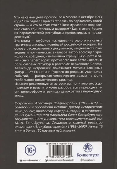 This book is the second edition of the first historical study of the 1993 tragedy. Having studied all available materials and re-examined the testimony of participants and eyewitnesses, the author not only reconstructs the events in detail, hour by hour and minute by minute, but also provides a profound analysis of the causes of the tragedy, uncovers the secret motives behind the fateful decisions, and arrives at sensational conclusions...
