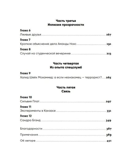 Imagine yourself in the shoes of a judge who has to decide whether to release a suspect on bail. You are offered either to simply read the dry facts of the suspect's background or to meet and talk to him in person, look him in the eye and see how he reacts. Many of us will choose the second option - after all, we often find information obtained through personal contact to be extraordinarily valuable. But this, according to Malcolm Gladwell, is the reason for fatal mistakes, personal tragedies, wrong judicial decisions and even catastrophes on a global scale. A spy who worked for years in the Pentagon office passing data to Cuban intelligence. Politicians who failed to recognize Hitler's double game, leading the world to disaster. Police officers who shoot innocent people simply because their reactions seem suspicious to them. Parents who can't recognize a sports doctor as a rapist molesting their children. The author analyzes all these stories and comes to shocking conclusions. It turns out that we are unable to recognize a liar, even when we communicate with him for a long time. And all our usual ideas about the suspicious behavior of people, their facial expressions, gestures, intonations turn out to be fundamentally wrong. Malcolm Gladwell offers us an intellectual adventure through the dark side of human nature. You will see that our perception of strangers almost always does not coincide with reality, and misperception of their behavior can have disastrous consequences.