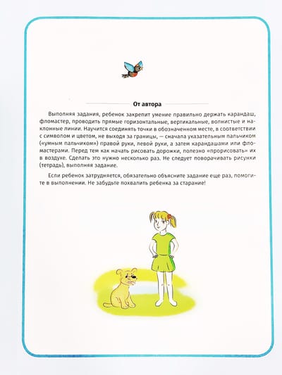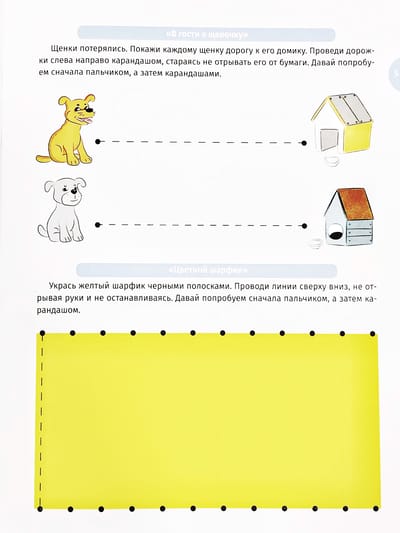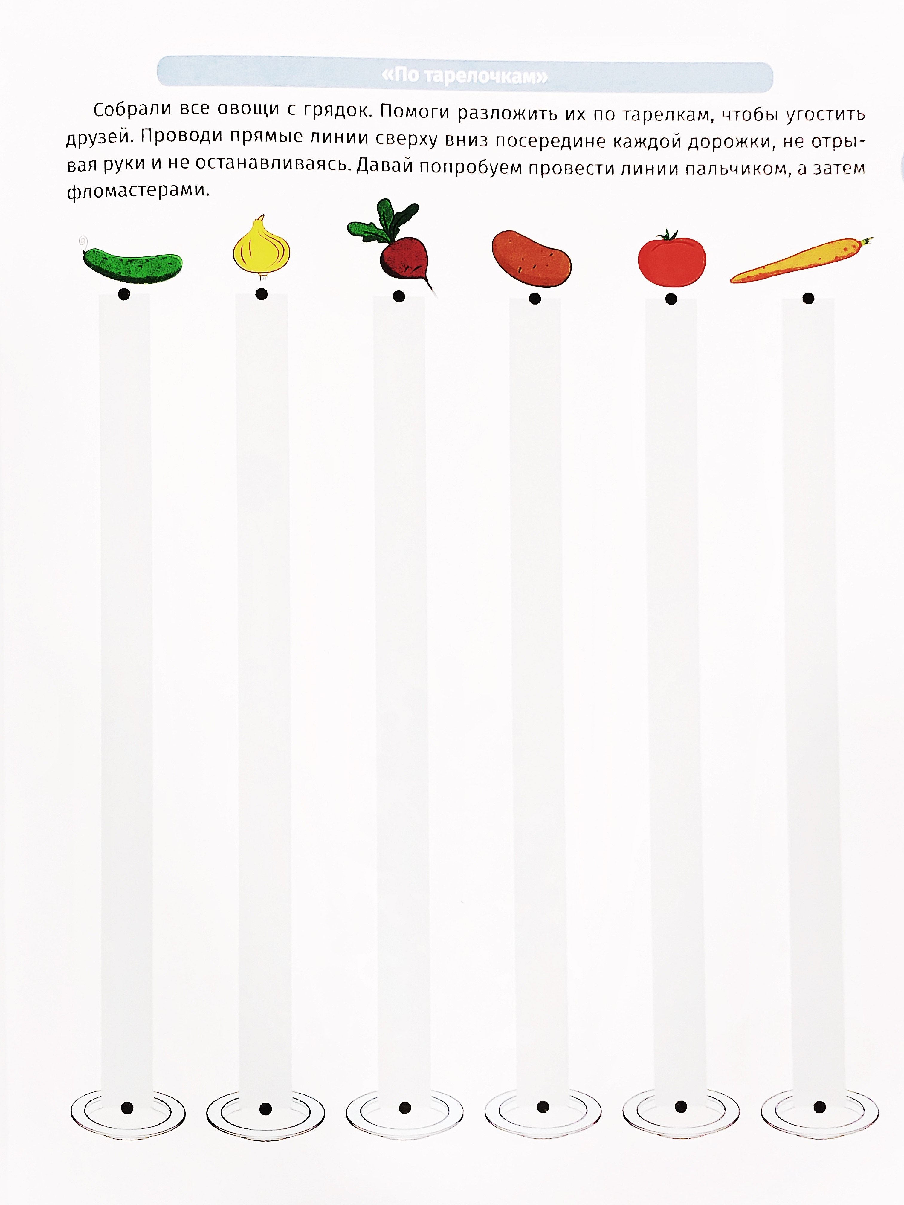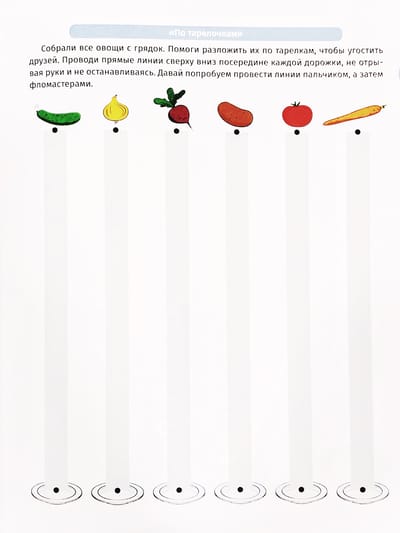 The notebook contains exercises aimed at developing and consolidating the child's fine motor skills, graphic skills, visual-motor coordination. The tasks in the pictures are designed with due regard for the age characteristics of children aged 3-4 years old. During the lessons the child draws various lines (left to right, right to left, top to bottom, bottom to top, slanted), circles on the dotted line, starting from the arrow, by logic, shading, coloring. All tasks are performed with simple and colored pencils and felt-tip pens.