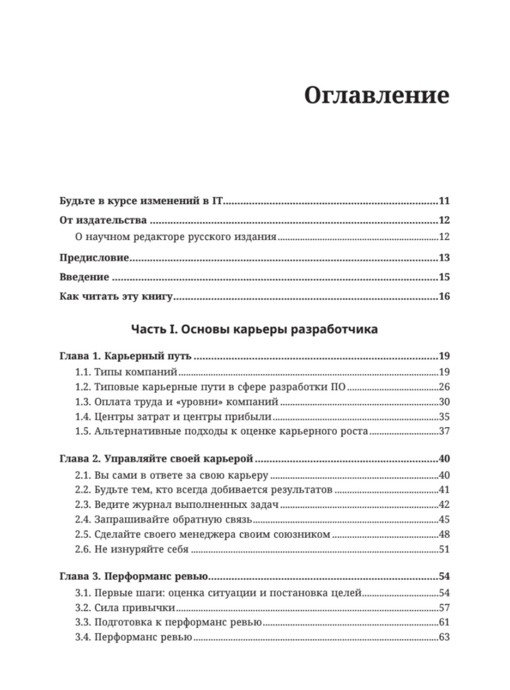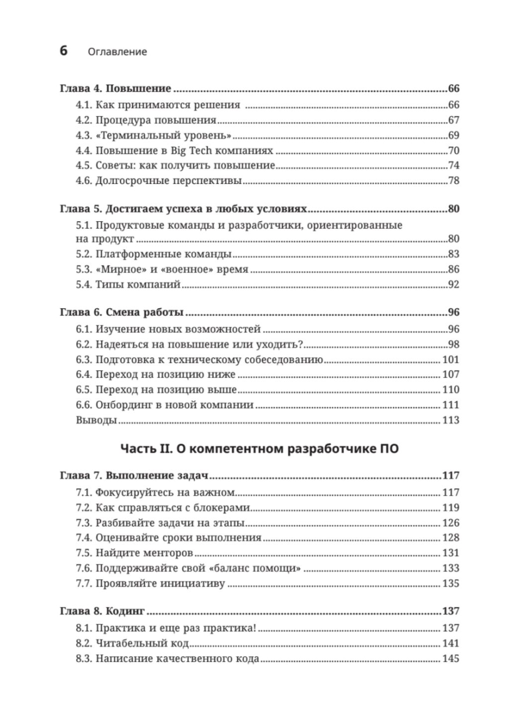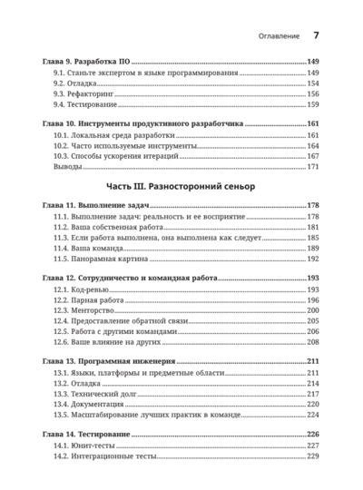 You can read the book from any place! Stuck before a promotion? Open the chapter about seniors. Want to become a tech lead? Go to the part about team leadership.