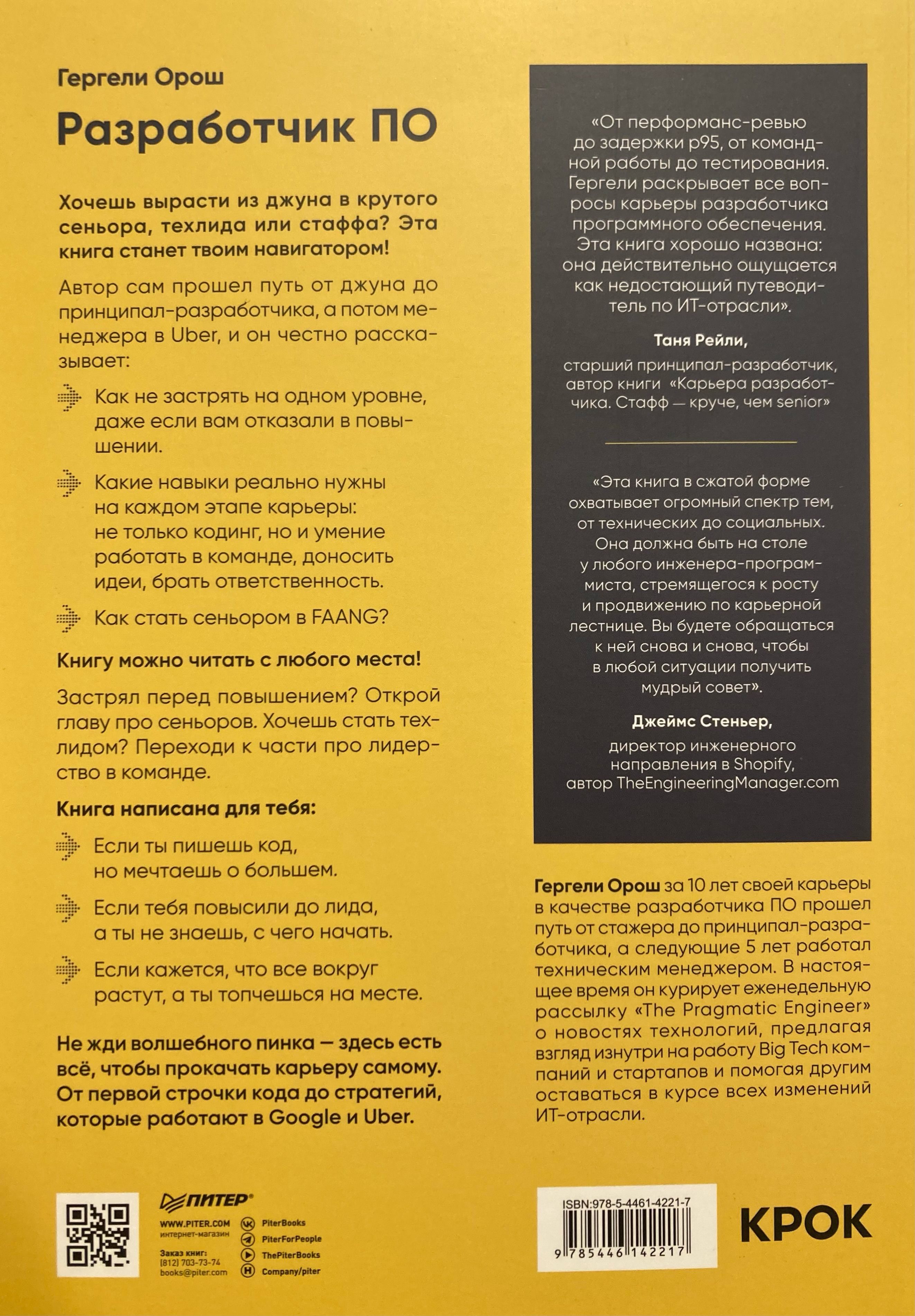 Want to grow from a junior to a cool senior, tech lead or staff? This book will become your navigator! The author himself went from a junior to a principal developer, and then a manager at Uber, and he honestly tells: