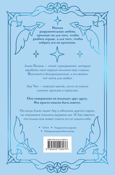 Alex Volkov is a genius programmer who made his first million while still in school. Cruel and unscrupulous, there's no room for love in his life. Ava Chen is a delicate flower, but her past tragedy hasn't broken her. They are completely unsuitable for each other. It's simply dangerous for them to be together. But when Alex sees Ava in the arms of another man, he becomes completely obsessed with her. And Ava feels like only she can save him from himself.