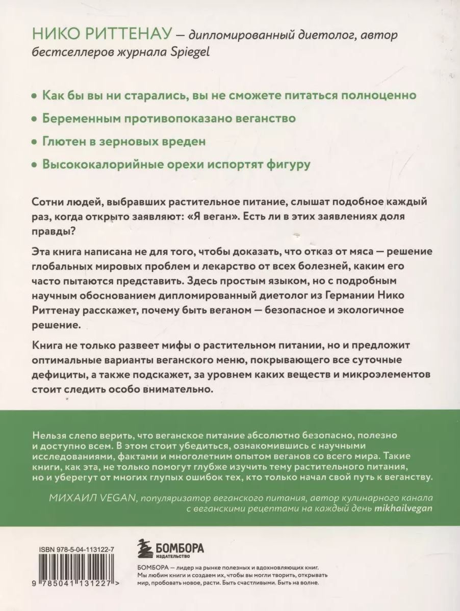 You are holding a book in your hands that will dispel the most common misconceptions about plant-based nutrition. This guide will explain why some dietary organizations recommend plant-based nutrition for people of all ages, while others are against it. The book will show in practice how to follow a vegan diet that covers your body's needs using a wide range of plant-based products. The manual does not idealize a diet without animal products, but dispels myths and frees you from misconceptions about it. It is written both for vegans, who will be able to get a complete nutrition guide that takes into account all the important aspects and features of a plant-based diet, and for everyone interested in nutrition science. This book is a distillation of proven data and proven facts about veganism, thanks to which you will be able to verify its safety and get rid of prejudices.