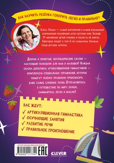 Elena Ulieva is the most popular author for children in Russia. Every year she is in the top 3 among children's writers according to the Book Chamber. More than 11 million children and schoolchildren are already growing up on her books, which tell even about the most difficult things through kind and instructive stories.