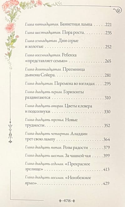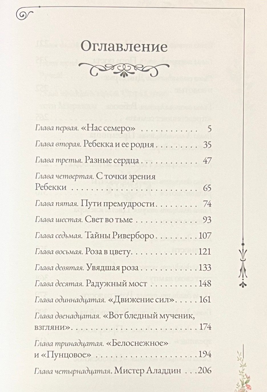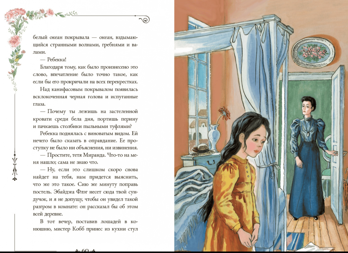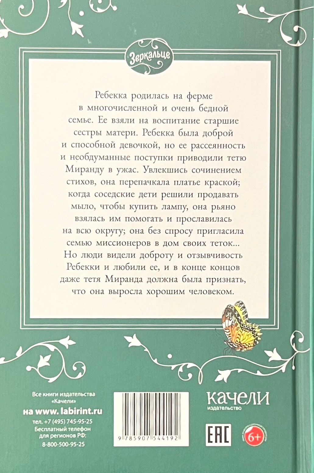 Rebecca was born on a farm in a large and very poor family. She was taken in by her mother's older sisters. Rebecca was a kind and capable girl, but her absent-mindedness and rash actions horrified Aunt Miranda. Passionate about composing poetry, she soiled her dress with paint; when the neighborhood children decided to sell soap to buy a lamp, she zealously took to help them and became famous throughout the district; she invited a family of missionaries to the house of her aunts without asking ... But people saw the kindness and responsiveness of Rebecca and loved her, and in the end even Aunt Miranda had to admit that she grew up a good person. For elementary school age children.