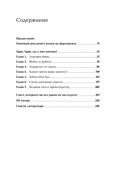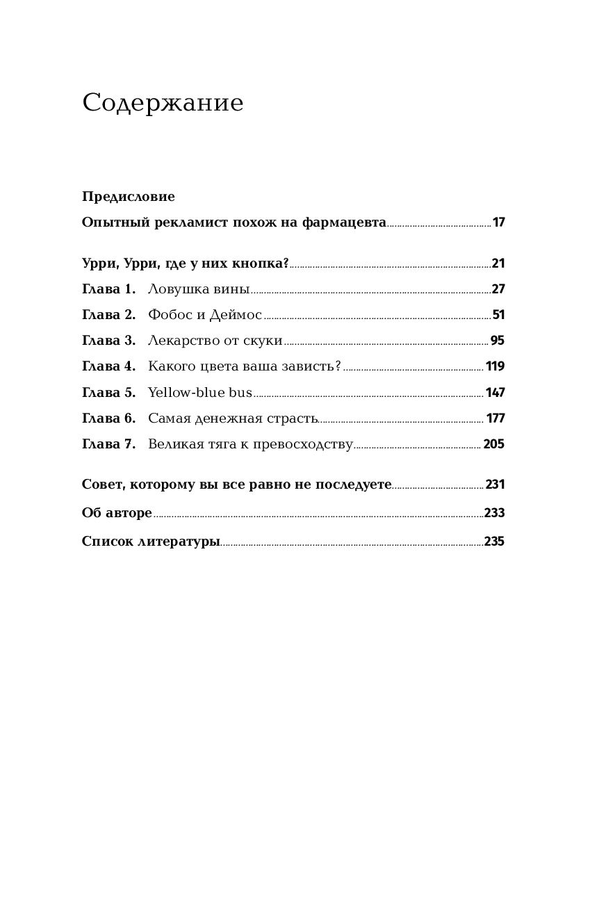On hundreds of examples (from the practice of b2c- and b2b-markets), the author analyzes the seven most powerful emotional springs that motivate people to action. These are envy, curiosity, fear, love, greed, vanity and guilt.