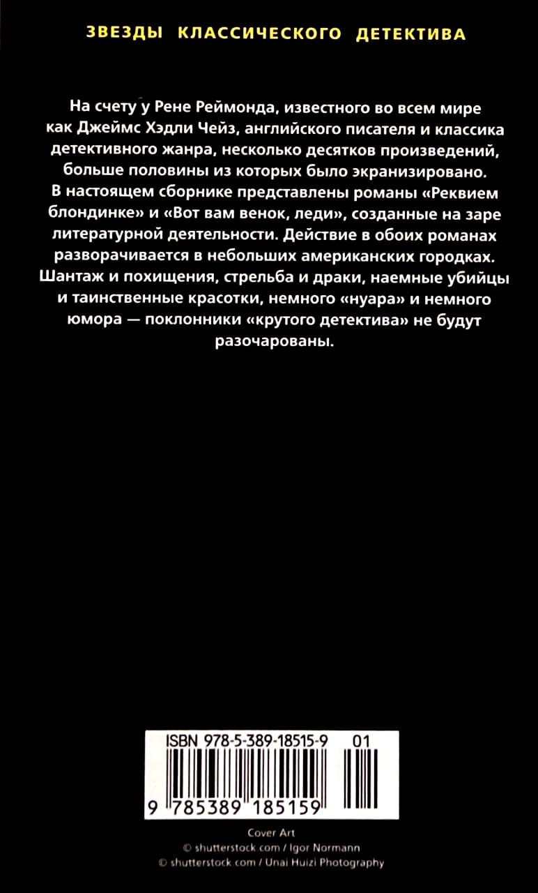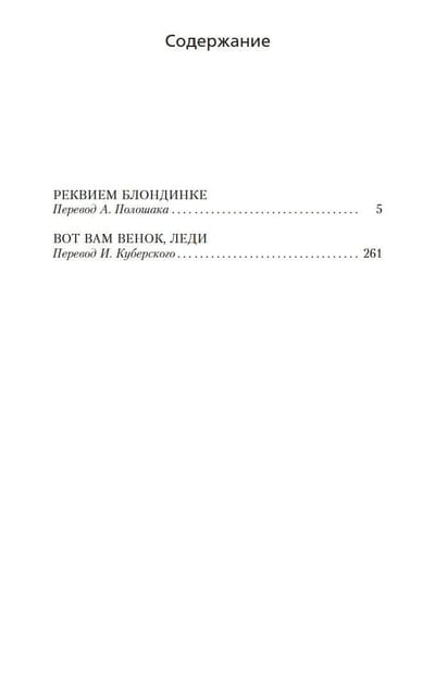 On account of Rene Raymond, known worldwide as James Hadley Chase, English writer and classic detective genre, several dozen works, more than half of which were filmed. This collection presents the novels “Requiem blonde” and “Here is your wreath, lady”, created at the dawn of literary activity. Both novels are set in small American towns. Blackmail and kidnapping, shooting and fighting, assassins and mysterious beauties, a little noir and a little humor – fans of the “cool detective” will not be disappointed.